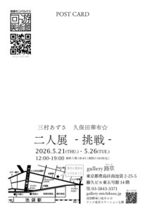 2026 展示情報 お知らせ 2026.04.112026.04.14 2026年展示予定です。随時更新します。 目次 展示予定1月三村あずさ個展2月いい芽ふくら芽RS5月二人展 ー挑戦ー 展示予定 1月 三村あずさ個展 日時:2026.1.26~1.31 会場:銀座・創英ギャラリー 2月 いい芽ふくら芽RS 5月 二人展 ー挑戦ー 日時:2026.5.21~5.26 会場:gallery路草 東京都豊島区南池袋2-25-5 藤久ビル東五号館14F